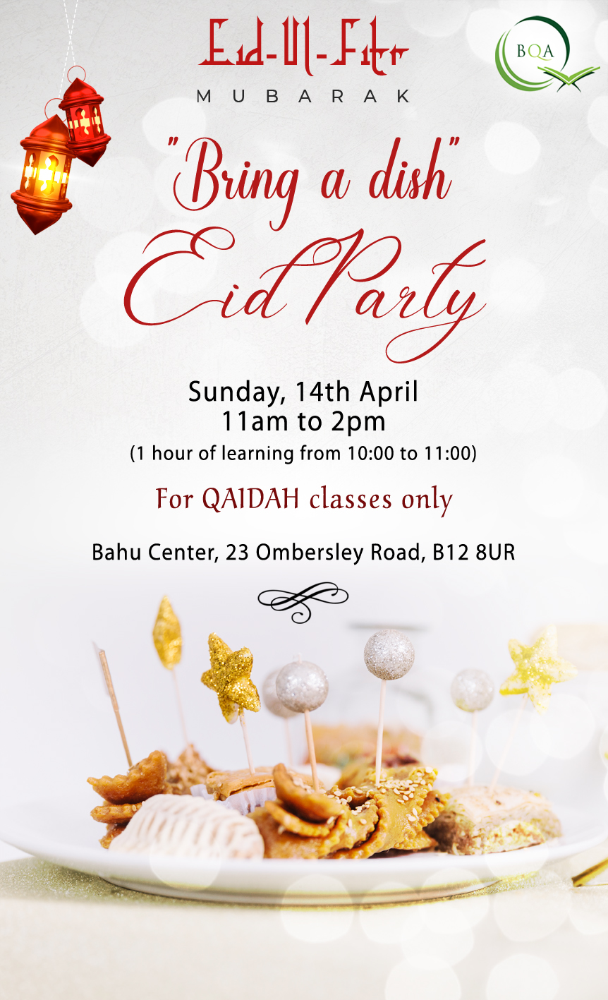 We would like to inform you that we are planning a “Bring a Dish” Eid party for the students on Sunday, 14th April InshaAllah.